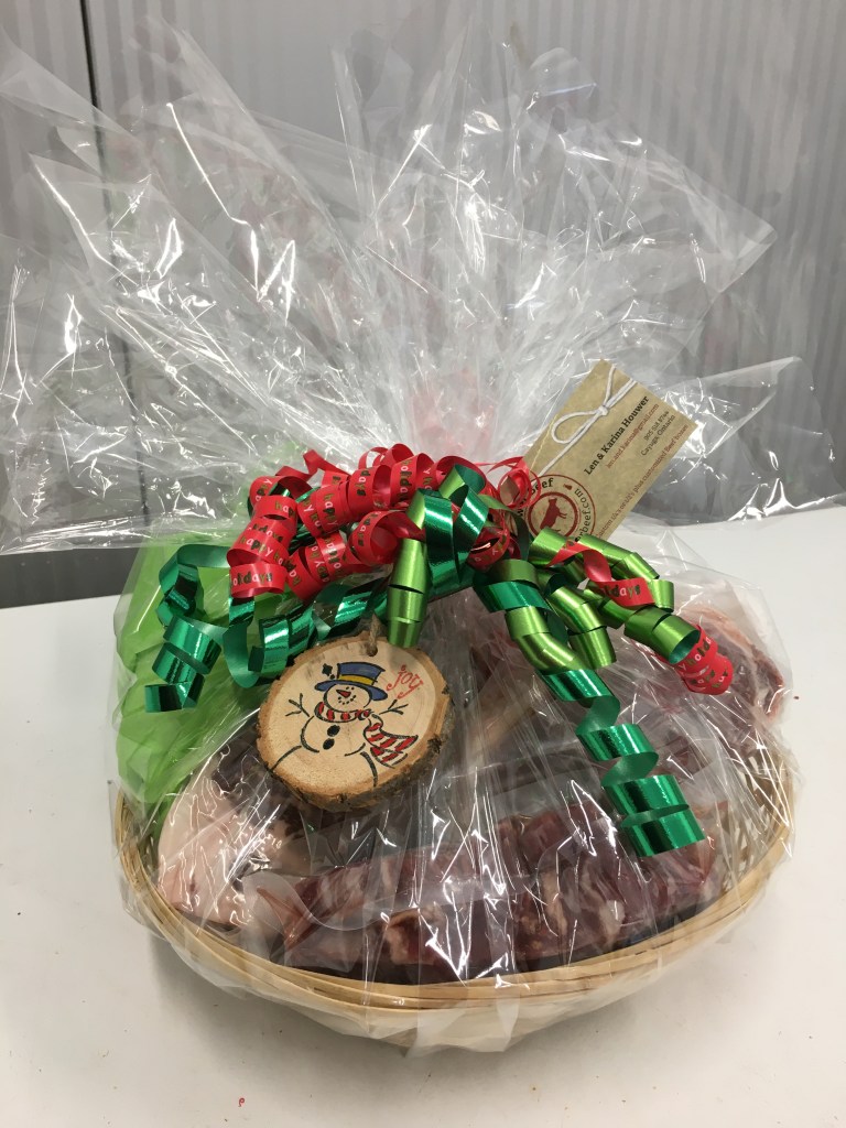 We can help with hostess gifts, that hard-to-buy for person, and more! Our meat gift baskets were a super popular gifting item in past years – our customers have said they are very well received!!